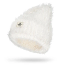 Biała czapka damska beanie wykonana z nylonu, pokryta fakturą imitującą futerko - Peterson