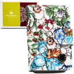 Wielokolorowy portfelik damski ze skóry naturalnej w kwiaty zamykany biglem i zatrzaskiem - Peterson