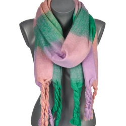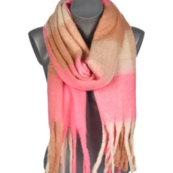 Różowy jesienny duży Szalik Damski ciepły szal w kratę frędzle szal-63