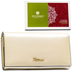 Duży skórzany portfel damski ze złotymi akcentami - Peterson