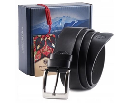 Skórzany pasek męski z klasyczną metalową klamrą - Peterson