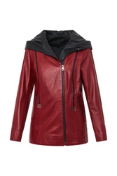 Kurtka skórzana damska "Mariola" zapinana na zamek z kapturem na suwak