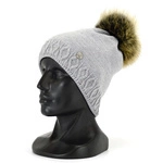 Czapka damska z naturalnym pomponem ze wzorkiem
