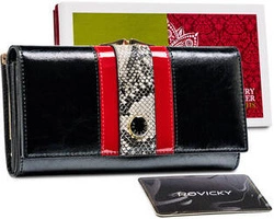 Lakierowany portfel damski wysokiej jakości zdobiony wężowym wzorem - Rovicky