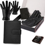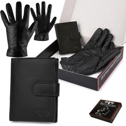 Zestaw męski skórzany portfel pionowy rękawiczki czarne Beltimore T91