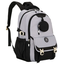 Szaro-czarny plecak szkolny z poliestru z dodatkową saszetką - Peterson