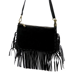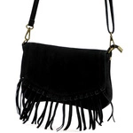 Vera Pelle damska torebka na ramię skórzana z frędzlami boho shopperbag