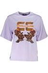 CAVALLI CLASS FIOLETOWY T-SHIRT DAMSKI Z KRÓTKIM RĘKAWEM