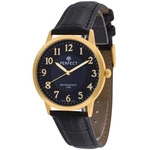 Zegarek męski kwarcowy czarno-złoty klasyczny skórzany pasek C402