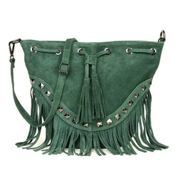 Beżowa Torebka damska skórzana worek frędzel A5 modna L81