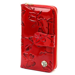 Duży, pojemny portfel damski ze skóry lakierowanej na zatrzask - Rovicky