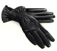Stylowe rękawiczki damskie skóra eco na ściagaczu - MARCO MAZZINI - czarne