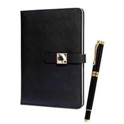 Zestaw prezentowy: czarny notes w linie z magnetycznym zapięciem i długopis z czarnym wkładem - Peterson