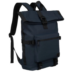Miejski, pojemny plecak typu roll-top w granatowym kolorze z zewnętrzną kieszenią na suwak - Peterson