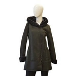 Damski zimowy ciepły Kożuch z futrem skóra owcza na guziki kaptur Bukowski