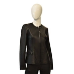 Zapinana klasyczna damska Skórzana kurtka "Aneta" z ozdobną plisą Bukowski