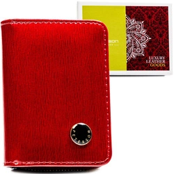 Mały portfel skórzany na zatrzask w czerwonym kolorze - Rovicky