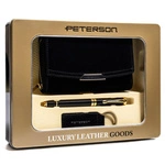 Zestaw prezentowy: skórzany portfel damski, brelok i długopis — Peterson