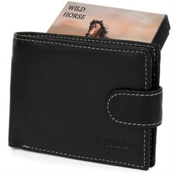 Portfel męski skórzany czarny poziomy z zapinką pojemny Beltimore RFiD I46