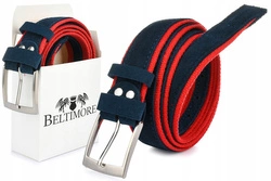 Skórzany pasek damski do spodni sukienki granatowy skóra nat. zamszowa 3 cm Beltimore D98 : Kolory - granatowy, Rozmiar pasków - r.110-125 cm