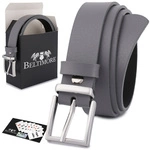 Skórzany pasek damski do spodni sukienki szara skóra nat 2,5 cm Beltimore O07 : Kolory - szary, srebrny, Rozmiar pasków - r.110-125 cm