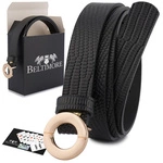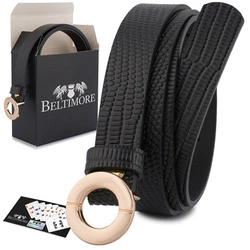 Skórzany pasek damski do spodni sukienki czarna skóra nat 2,5 cm Beltimore O02 : Kolory - czarny, Rozmiar pasków - r.110-125 cm