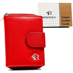 Mały portfel skórzany na zatrzask w czerwonym kolorze - Rovicky