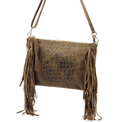 Listonoszka z frędzlami Damska torebka z kieszeniami skórzana Camilla