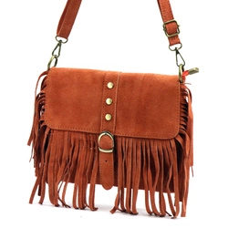 Boho damska listonoszka skórzana zamszowa z frędzlami i kieszenią Luka