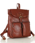 Mały plecak damski skórzany z kieszonkami - MARCO MAZZINI brąz whisky