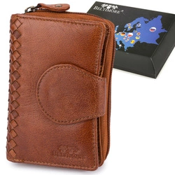 Brązowy Portfel Damski Skórzany Pionowy Vintage Plecionka premium Beltimore Q61