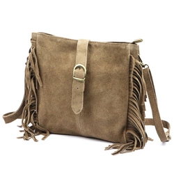 Luka torebka damska skórzana zamszowa miejska z frędzlami i kieszenią