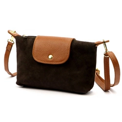 Dwukomorowa damska listonoszka skórzana zamszowa torebka na ramię Luka