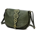 Elegancka damska listonoszka skórzana ze złotymi dżetami torebka na ramię