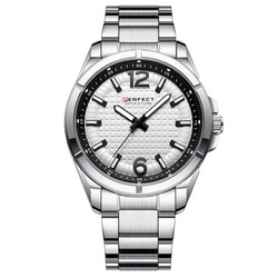 Srebrny elegancki zegarek męski bransoleta duży solidny Perfect CH03M