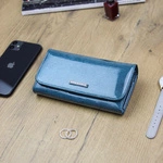 Pojemny Skórzany damski klasyczny podłużny portfel lakierowany Gregorio