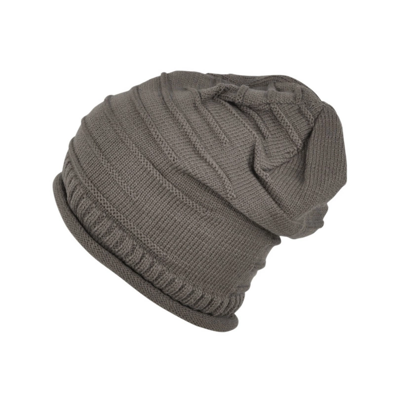 Czapka typu beanie z luźno opadającym tyłem i poziomymi przeszyciami.