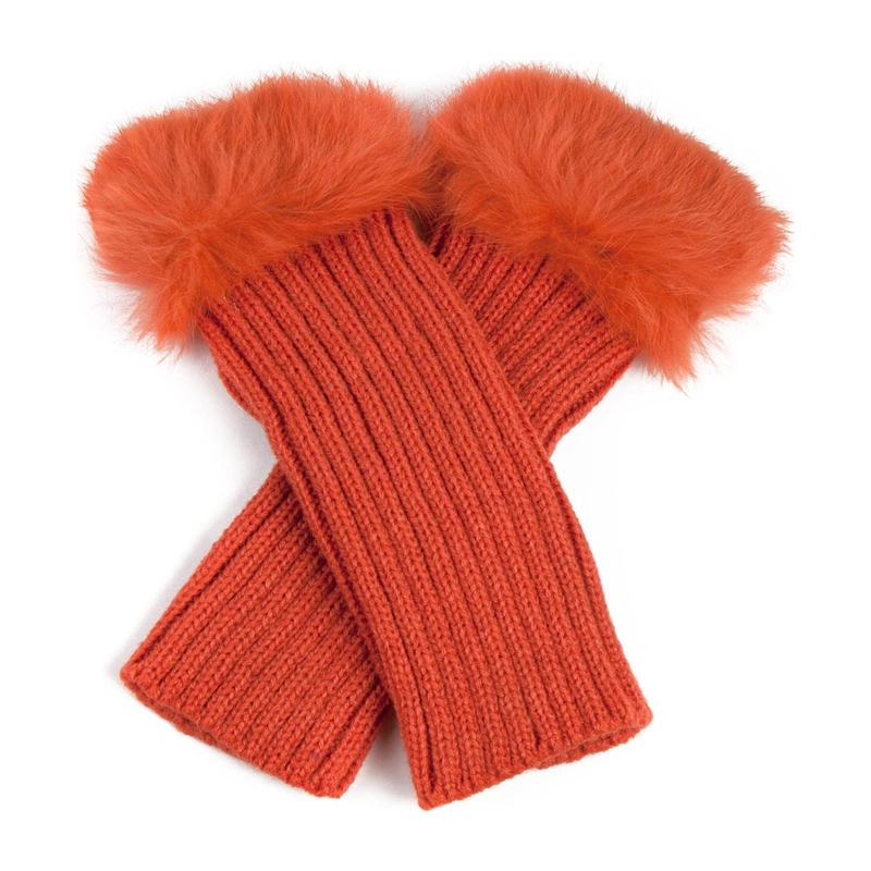 Krótkie mitenki wykończone prawdziwym króliczym futerkiem.