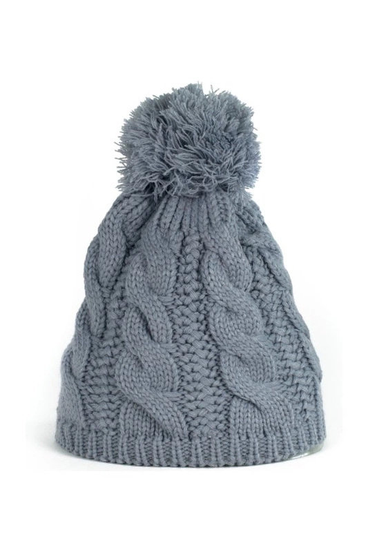 Ciepła czapka z pomponem. Zdobione klasycznym splotem w warkocze.