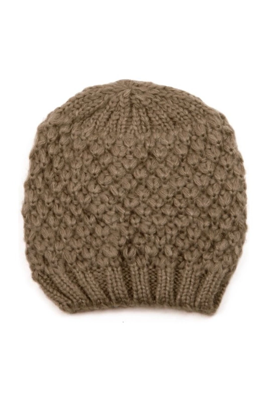 Ma ciekawy splot zakończony ściągaczem z wszytą gumką.