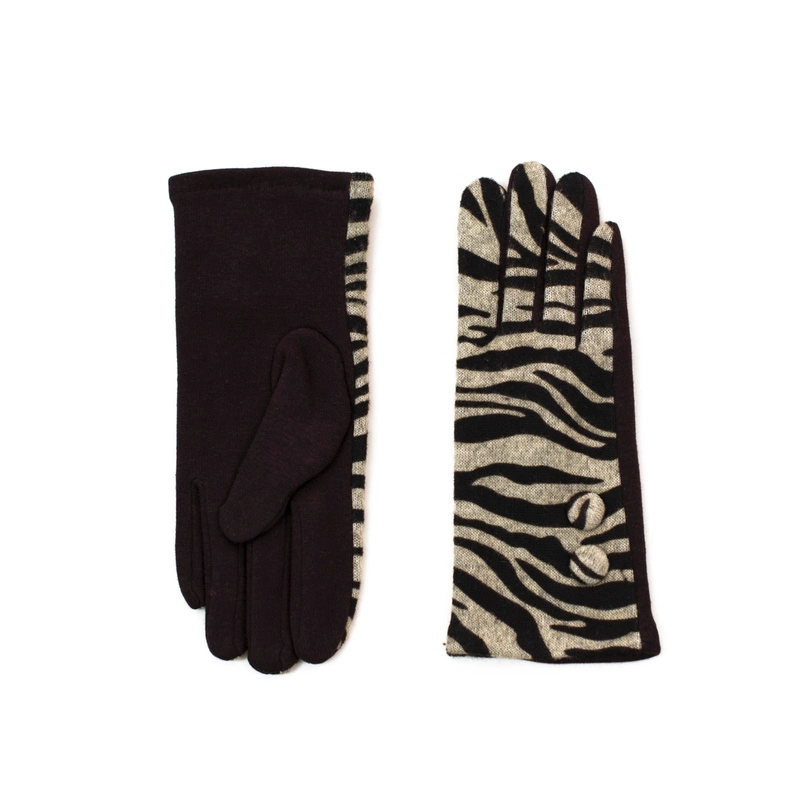 Rękawiczki od spodu są jednobarwne, u góry zdobione są motywem zebry.