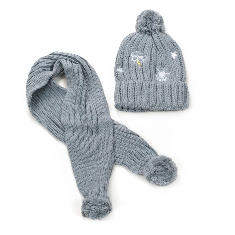 Czapka jest podwijana i dobrze chroni uszy. Wyszywany wzór ze słoneczkami, chmurkami i gwiazdkami dodaje jej zimowego uroku.