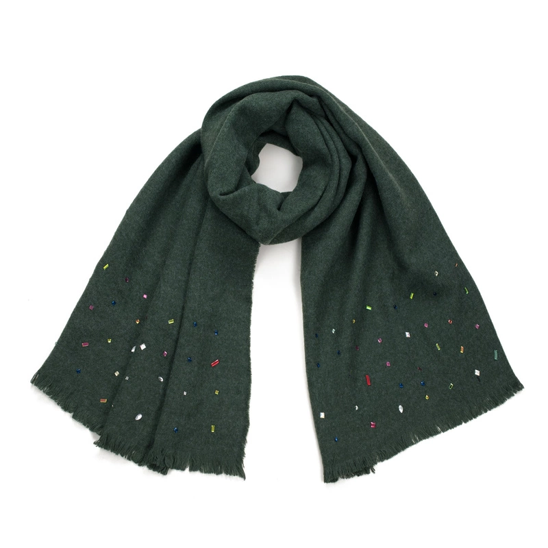 Wykonany z miękkiego materiału przypominającego wełnę. Idealny do opatulenia się nim w chłodne dni.