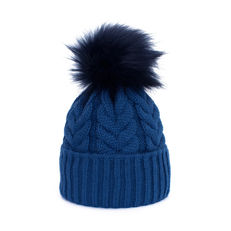 Futrzany pompon jest wykonany ze sztucznego futerka.