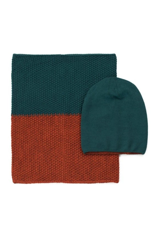 Komin typu tuba. Czapka jest dwustronna, wykonana z podwójnego materiału.