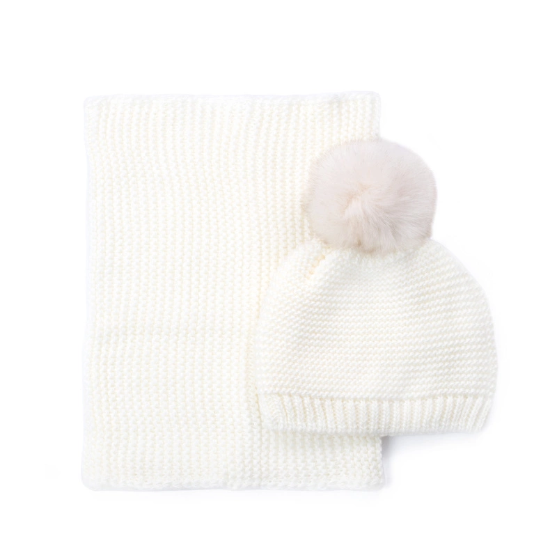 Komin typu tuba. Czapka z pomponem wykonanym ze sztucznego futerka, podszyta polarem.