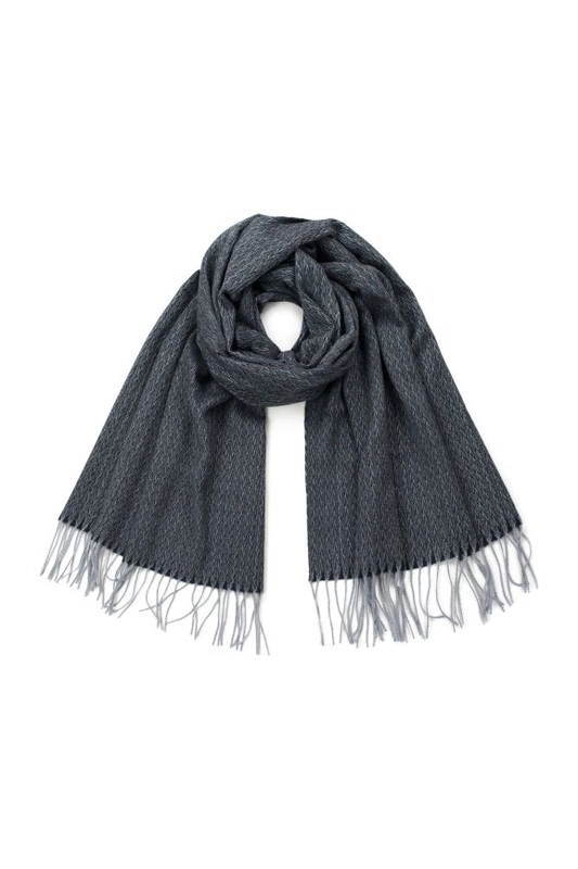 Zakończony frędzelkami. Ładnie się układa.
