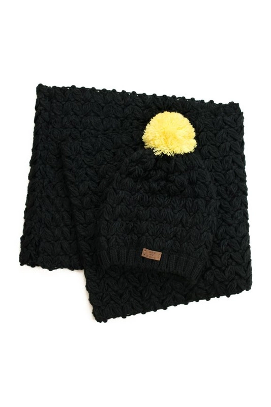 Czapka podszyta od wewnątrz polarem. Podwójnie zawijany komin dobrze otula szyję.