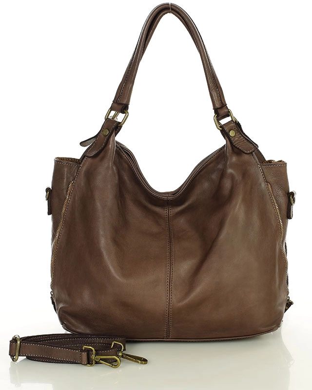 Torba skórzana wysokogatunkowa na ramię styl miejski shoulder leather bag - MARCO MAZZINI czekoladowy brąz