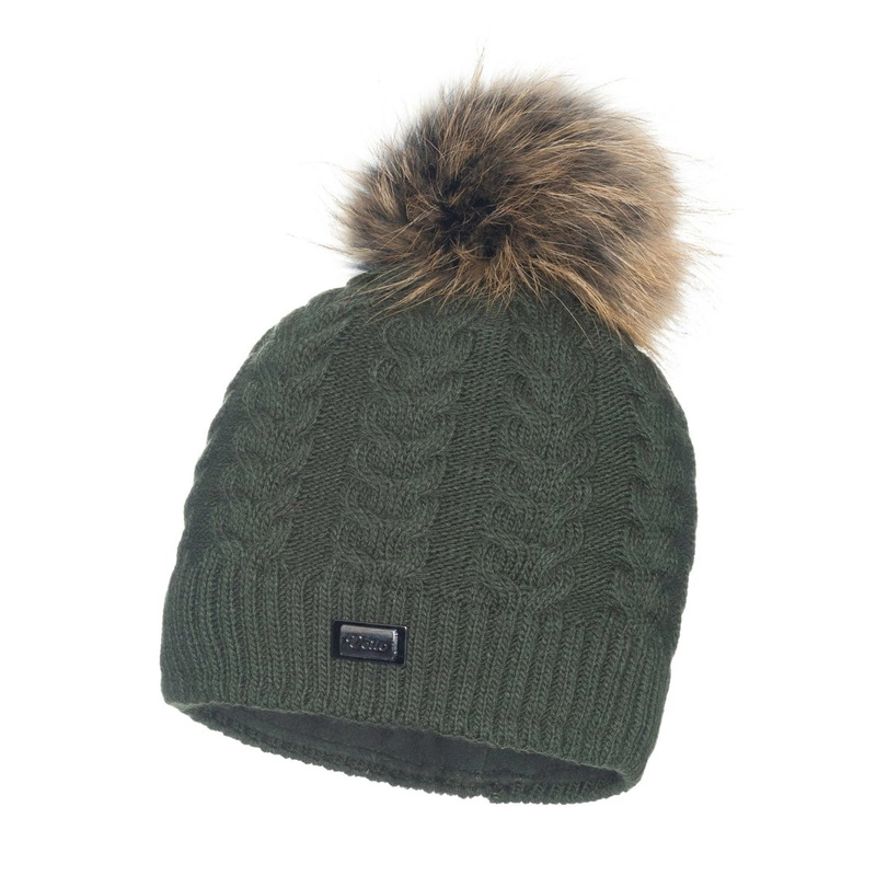 Ciepła wełniana czapka damska z naturalnym pomponem